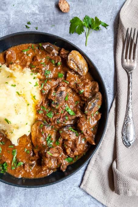 Creamy Beef stroganoff with mash potatoes