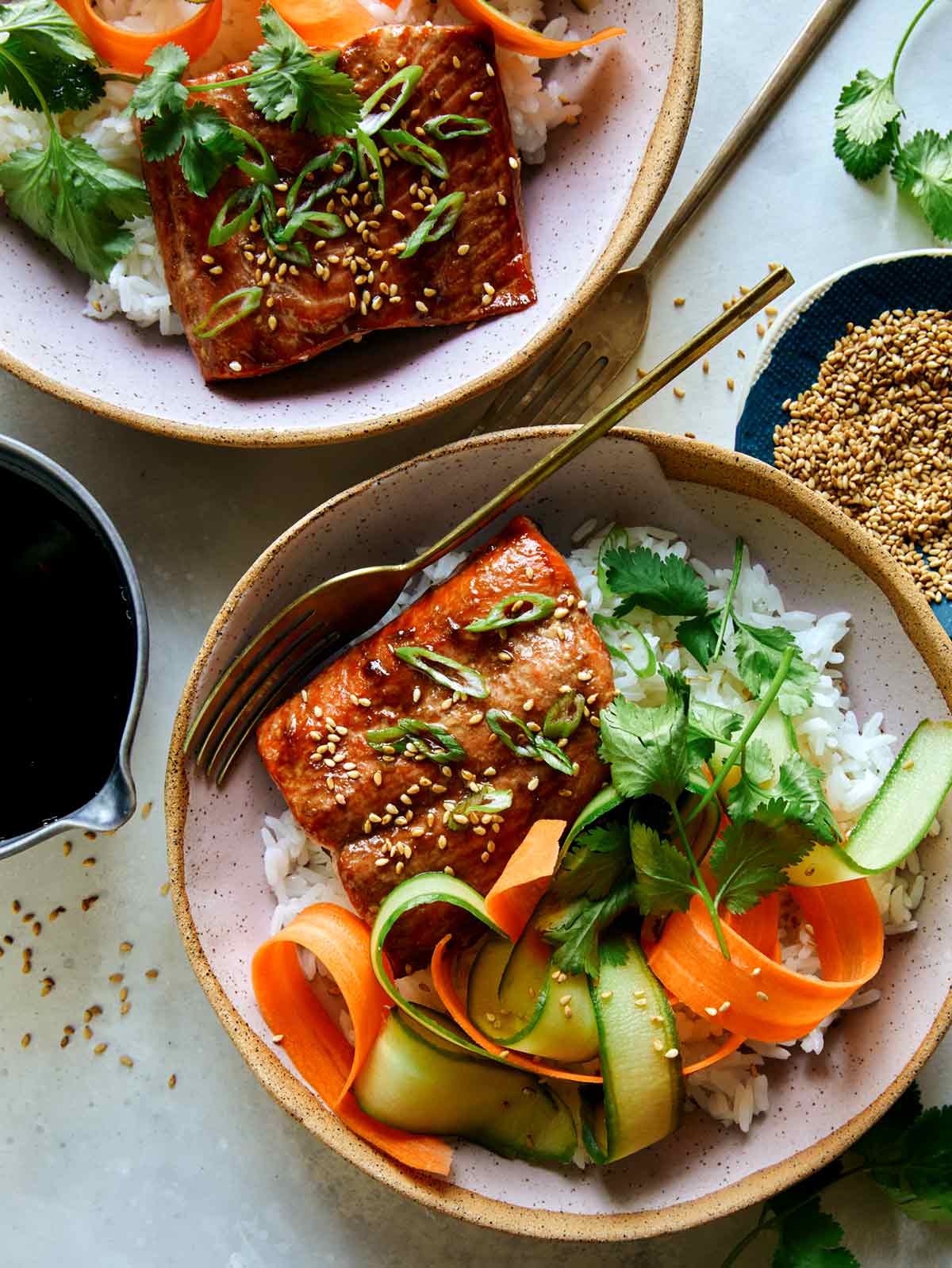 Try serving your teriyaki salmon over cauliflower rice for a low-carb option.